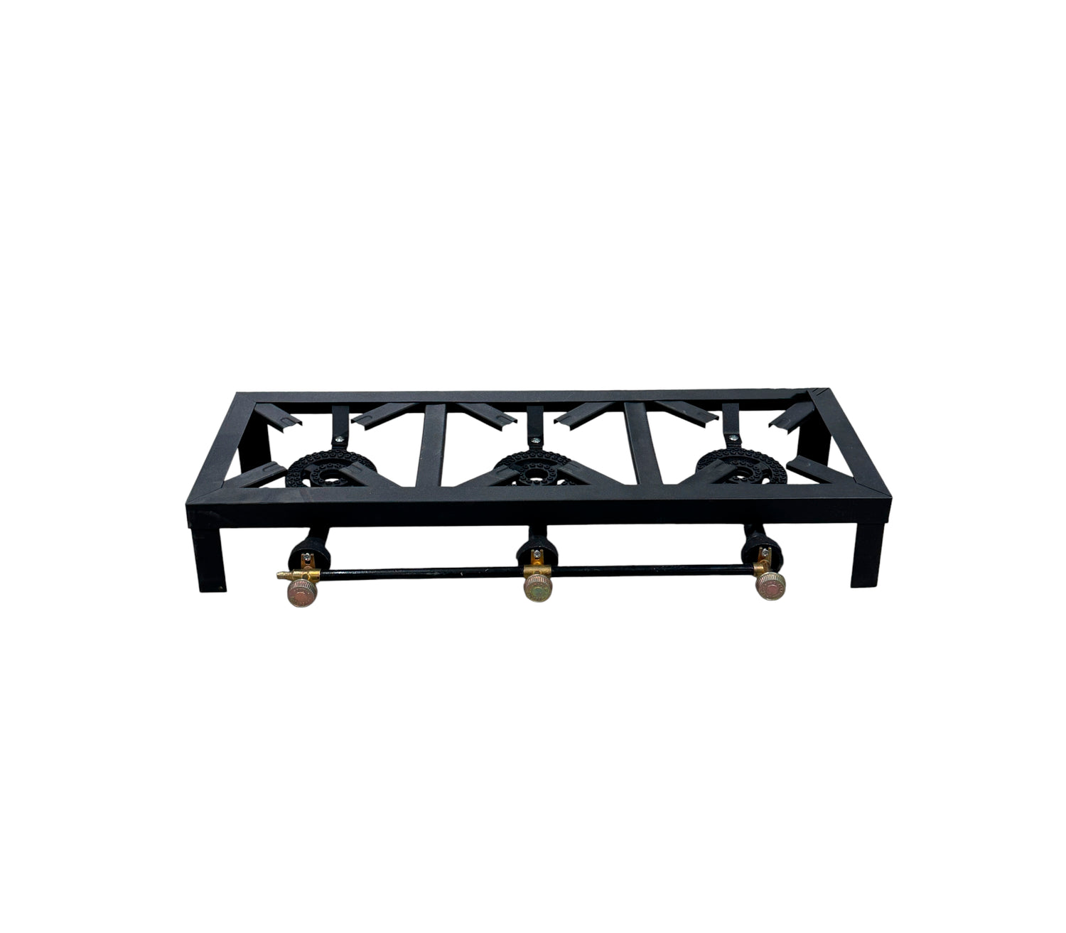 Control independiente: Equipado con tres llaves de bronce de alta precisión para regular la llama de cada hornilla de forma individual.