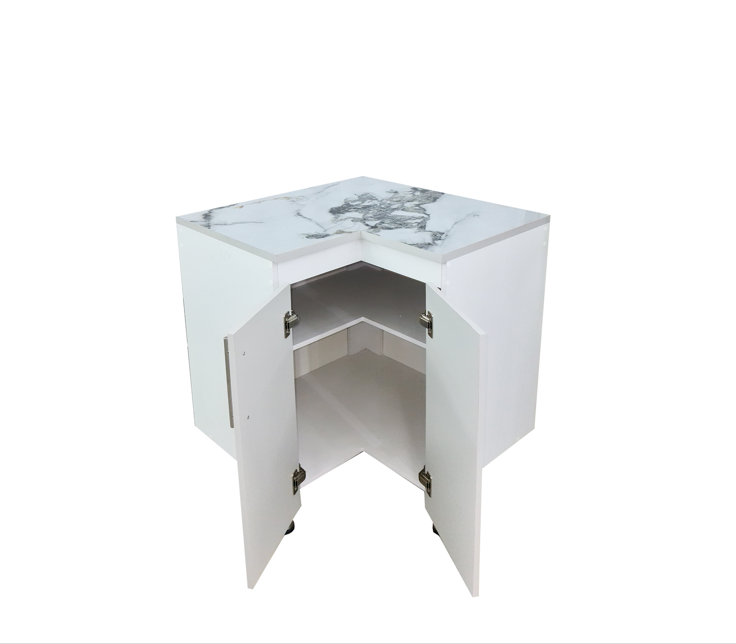 Gabinete/Mesón de Cocina Esquinero C/2Puertas Tope en PVC Marmolizado Powerfik