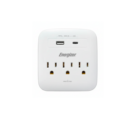 Regleta cuadrada 3 tomas c/puerto usb Energizer