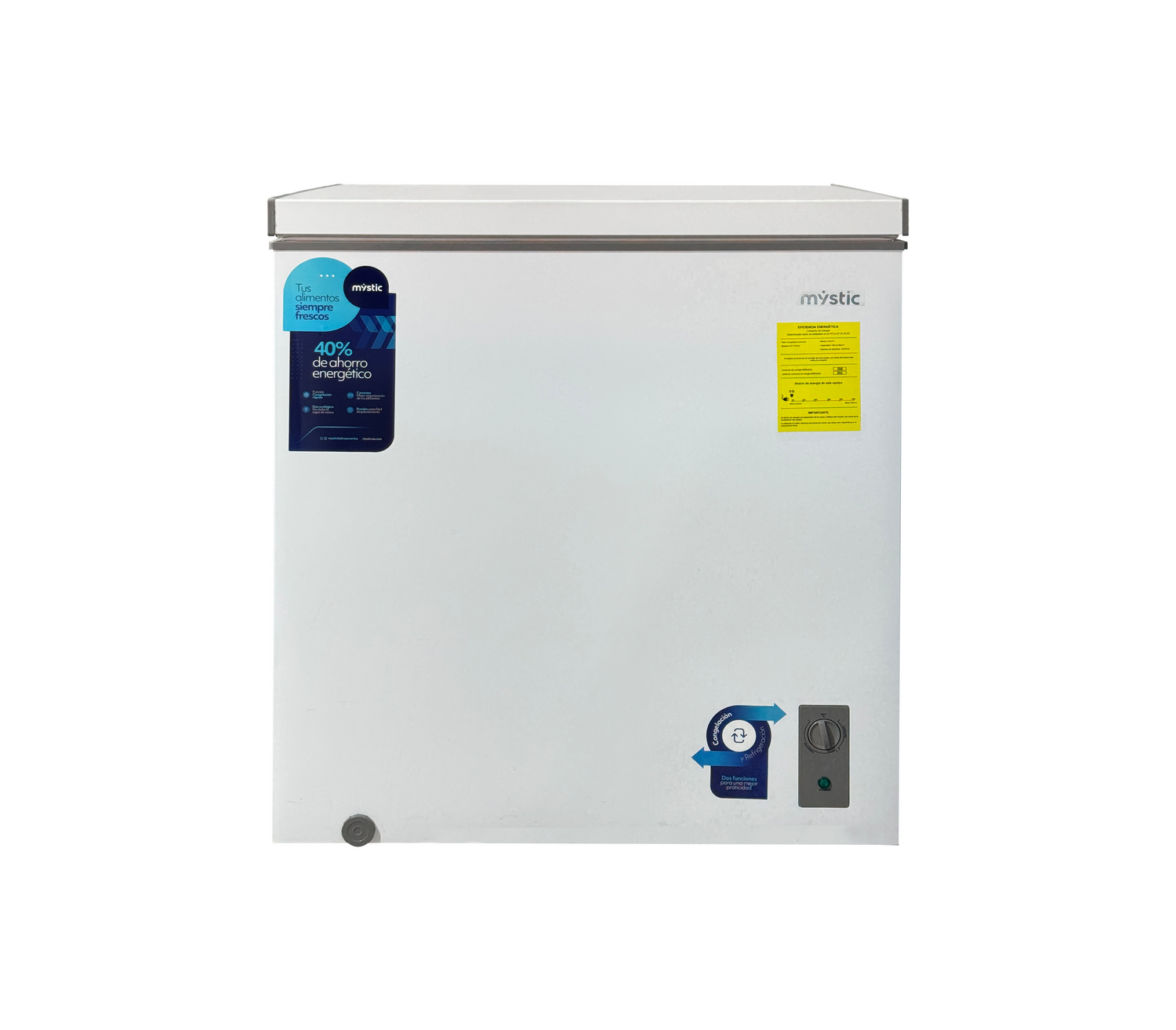 Optimiza la conservación de tus alimentos con el avanzado Congelador horizontal Mystic, una solución versátil diseñada para adaptarse a tus necesidades de almacenamiento con eficiencia y estilo.