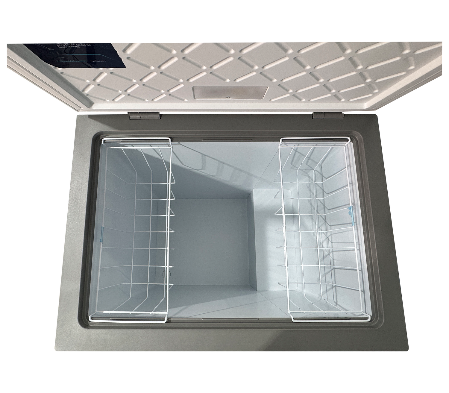 El diseño del congelador prioriza la comodidad y la durabilidad; por ello, su interior cuenta con un revestimiento de acero inoxidable para mejor protección y fácil limpieza, complementado con una práctica canasta incluida para organizar artículos pequeños. Al abrirlo, una brillante luz LED en la puerta ilumina todo el compartimiento, mientras que su puerta auto sostenible en 45° te permite manipular el contenido con ambas manos sin preocuparte por sostener la tapa.
