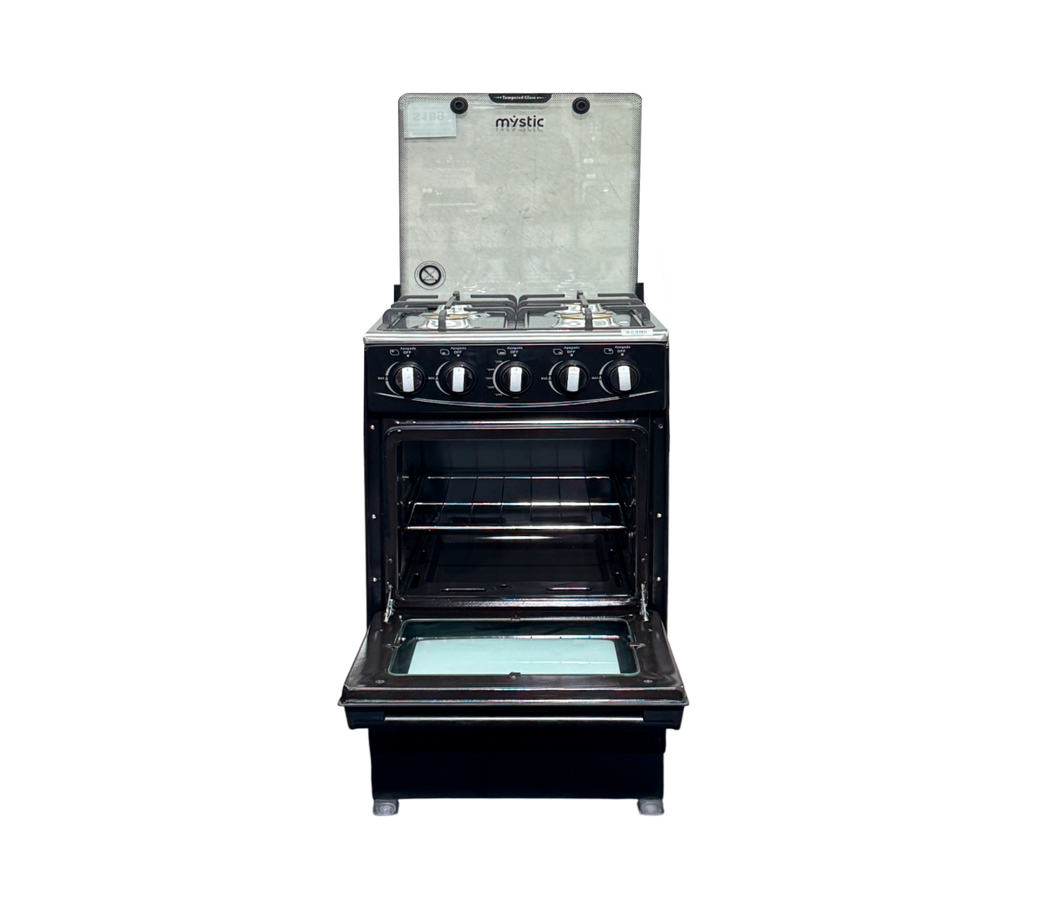 Cocina gas agata plus 4 h c/tapa de vidrio parrilla gruesa negra Mystic