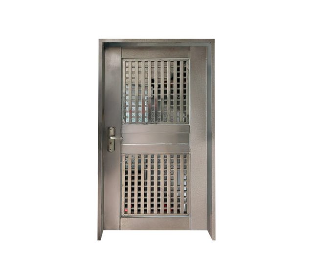 - Se trata de una puerta de seguridad fabricada completamente en acero, incluyendo su marco y una cerradura. Sus dimensiones son de 91 centímetros de ancho por 2,11 metros de alto.