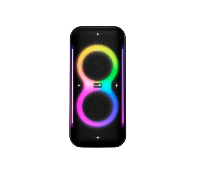 El parlante portátil Moonki Bossa Max MW-PB320 está diseñado para llevar la experiencia auditiva al máximo nivel, combinando un sonido potente y claro con un diseño moderno e impactante.